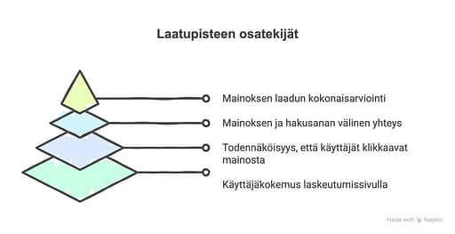 Eli käytännössä laatupiste (1-10) = mainoksen osuvuus + CTR + laskeutumissivun kokemus
